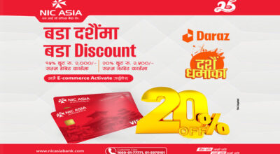 २८ भदाै, काठमाडाैं । एनआइसी एशिया बैंकले दशैंको अवसरमा दराज ई–कमर्शबाट अनलाइन किनमेल गर्ने आफ्ना