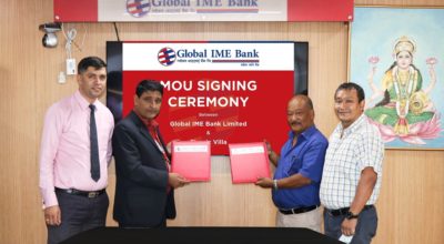 २८ साउन, काठमाडाैँ । ग्लोबल आइएमई बैंक लिमिटेड र क्लासिक भिल्ला प्रा.लि. बीच ग्राहकवर्गलाई सहुलियत
