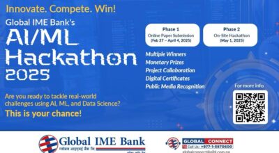 २० फागुन, काठमाडाैँ । ग्लोबल आइएमई बैंक लिमिटेडले पहिलो पटक आर्टिफिसिएल इन्टेलिजेन्स (एआई) र मेसिन