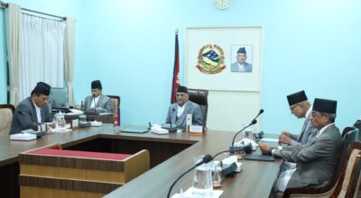 १५ जेठ, काठमाडाैँ । मन्त्रिपरिषद्को बैठक सकिएको छ । प्रधानमन्त्री तथा मन्त्रिपरिषद्को कार्यालय सिंहदरबारमा बसेको