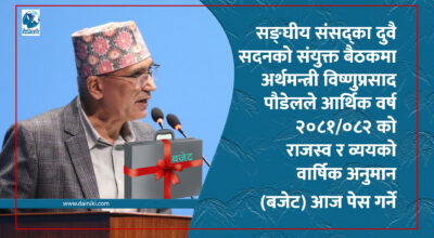 १५ जेठ, काठमाडौँ । सङ्घीय संसद्का दुवै सदनको संयुक्त बैठकमा आज उपप्रधानमन्त्री तथा अर्थमन्त्री विष्णुप्रसाद