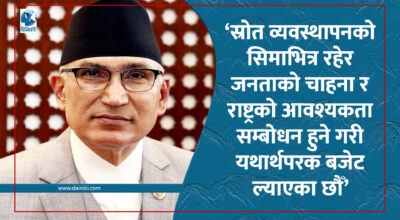 १५ जेठ, काठमाडौं । उपप्रधानमन्त्री एवं अर्थमन्त्री विष्णुप्रसाद पौडेलले जनताको चाहना र राष्ट्रको आवश्यकता सम्बोधन