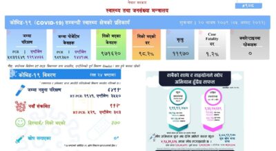 १८ साउन, काठमाडाैं । देशभर थप ९१५ जनामा कोरोनाभाइरसको संक्रमण पुष्टि भएको छ । ६