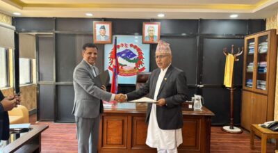 १० असोज, काठमाडौँ । अर्थमन्त्री रामेश्वर खनालसमक्ष नेपाल बिमा प्राधिकरणको अध्यक्षमा नियुक्त जनकराज शर्माले आज