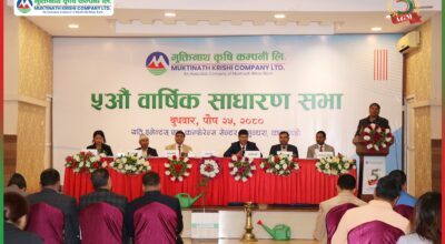 २७ पुस, काठमाडौँ । मुक्तिनाथ कृषि कम्पनीको ५औं वार्षिक साधारण सभा यती इभेन्टस् एंड कन्फेरेन्स सेन्टर