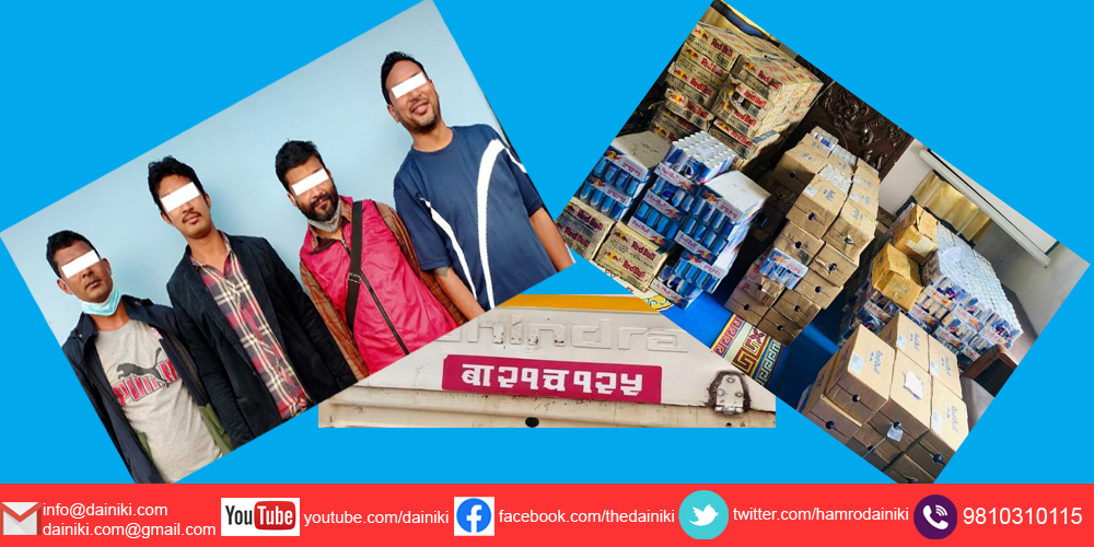 प्रहरीले बरामद सामाग्री मध्ये ८४ कार्टुन रेडबुल बा २१ च १२५ नम्बरको टाटा पिकअप भ्यानमा राखि जिल्ला सर्लाही हरिपुर न.पा. १ घर भई हाल जिल्ला काठमाण्डौ गोठाटार बस्ने बिरेन्द्र चौधरीले बिक्रिवितरण गरिरहेको अवस्थामा नयाँवस्ती गोठाटारबाट बरामद गरिएको, पक्राउ परेका मानिसहरुलाई बरामद सामान सहित आवश्यक कार्वाहीको लागि भन्सार बिभाग पठाइएको जनाएको छ ।