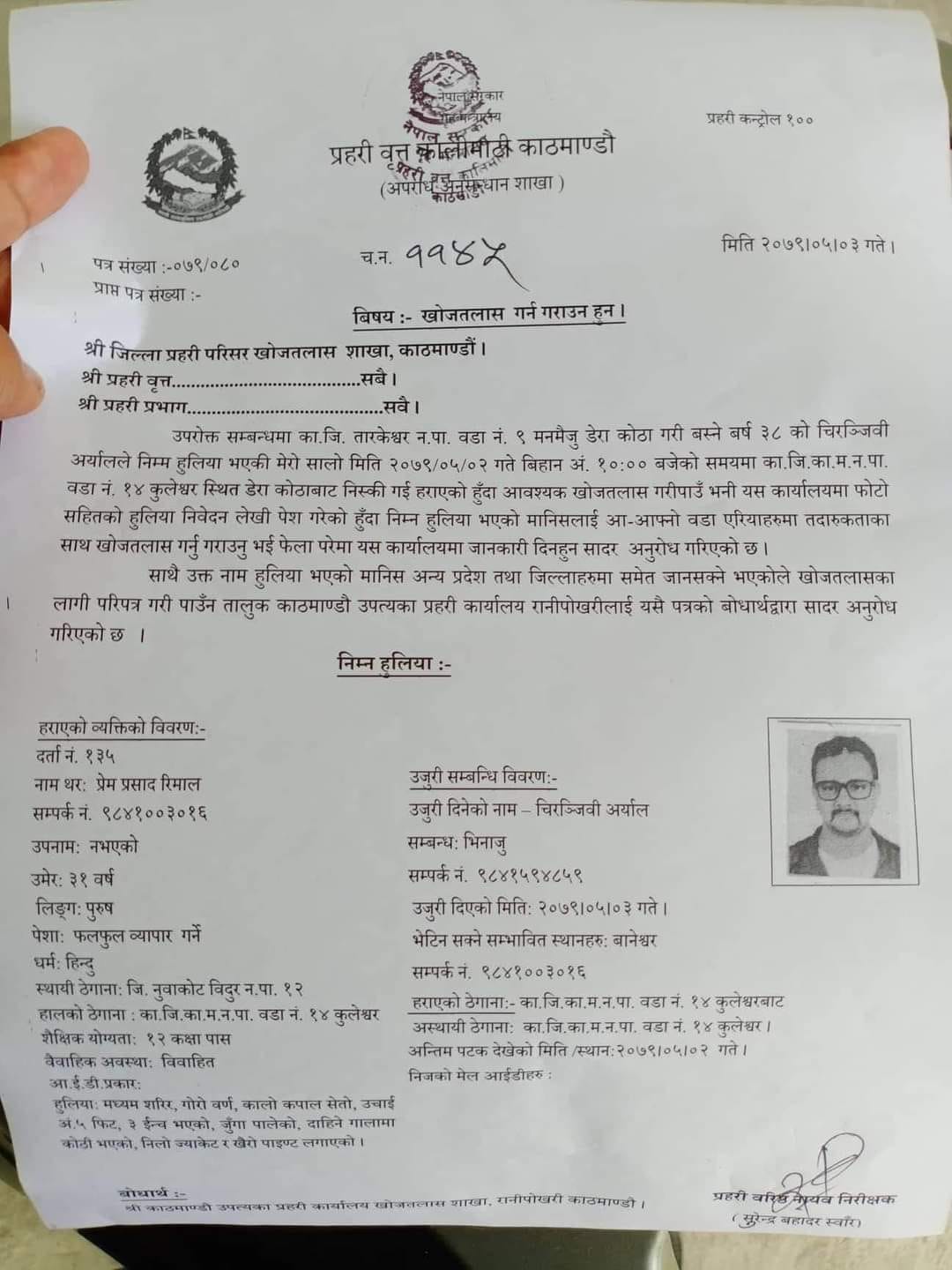 नुवाकोटका प्रेम रिमाल काठमाडाैँबाट हराए, खोजीमा सहयोग गरिदिन प्रहरीको आग्रह