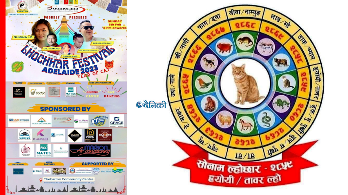 १६ माघ, अष्ट्रेलिया । एडिलेडमा तामाङ सोसाइटी साउथ अष्ट्रेलियाले बाघ वर्षलाई बिदाइ गरी विरालो वर्षलाई स्वागत गर्दै परम्परा अनुसार मनाईने सोनाम ल्होछार पर्व उपल्यक्षमा सोनाम ल्होछार महोत्सव फ्रेव्रुअरि ५ मा आयोजना गर्ने भएको छ । चान्द्रमासअनुसार प्रत्येक वर्ष माघ शुक्ल प्रतिपदाका दिन यो समुदायले सोनाम ल्होछार अर्थात् नयाँ वर्ष पर्व विविध कार्यक्रम आयोजना गरी मनाउने गरेको छ ।