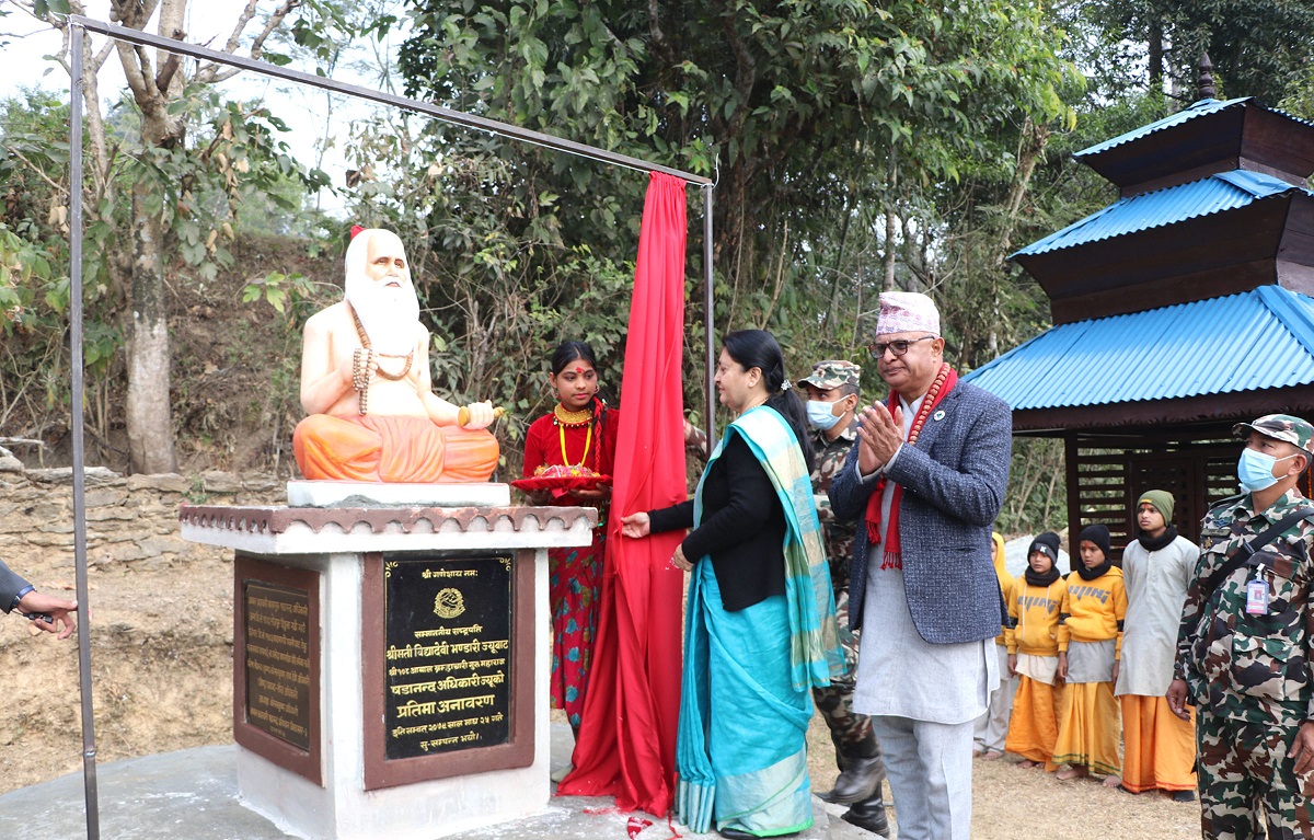 भाेजपुर पुगेर राष्ट्रपति भण्डारीद्वारा षडानन्द र योगमायाको सालिक अनावरण