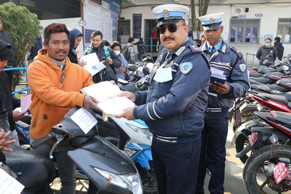 जसमध्ये साउन महिनामा ७३ ओटा, भदौमा ४० ओटा, असोजमा ३० ओटा, कार्तिकमा १४ ओटा, मंसिरमा ३७ ओटा र पुसमा ५१ ओटा सवारी साधन धनीलाई जिम्मा लगाइसकेको छ । यस्तै आज सहित यही माघ महिनामा मात्र ४३ ओटा सवारी साधन सम्बन्धित धनीलाई ट्राफिक प्रहरीले हस्तान्तरण गरेको छ । यसैगरी यस आर्थिक वर्षमा २४ ओटा चोरीका मोटरसाइकल सहित पक्राउ परेका २६ जनालाई थप अनुसन्धान र आवश्यक कार्वाहीका लागि विभिन्न प्रहरी वृतहरूमा पठाइएको छ ।