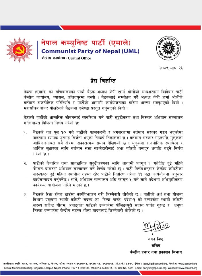 एमाले प्रदेश १ को इन्चार्जमा स्थायी कमिटी सदस्य राजेन्द्र गाैतम