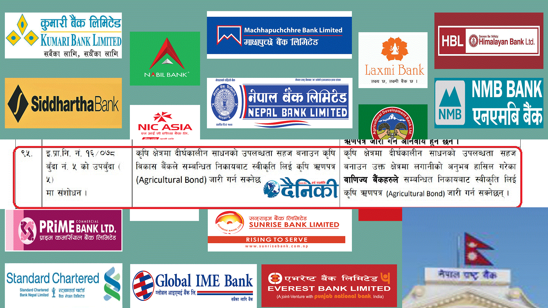 कृषि विकास बैंक बाहेकका अन्य वाणिज्य बैंकले पनि ‘कृषि ऋणपत्र’ जारी गर्न पाउने