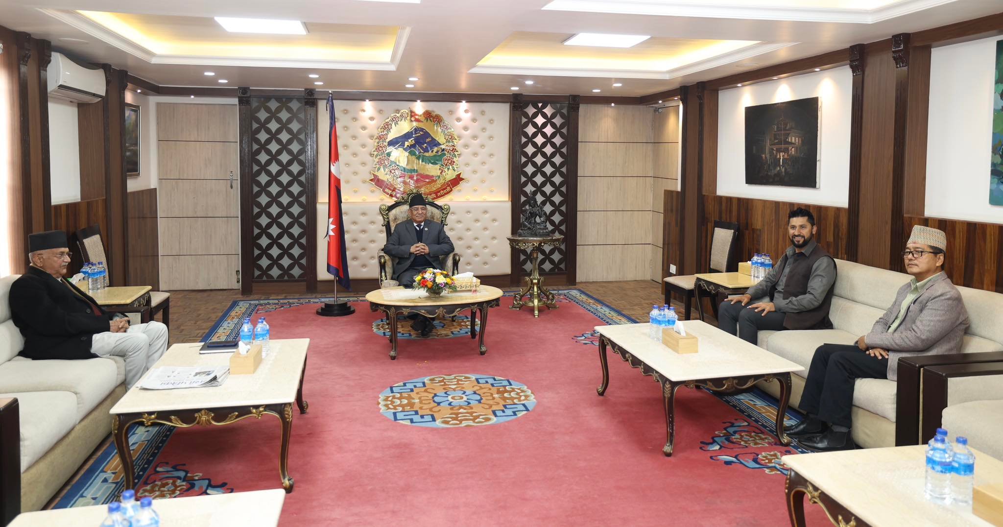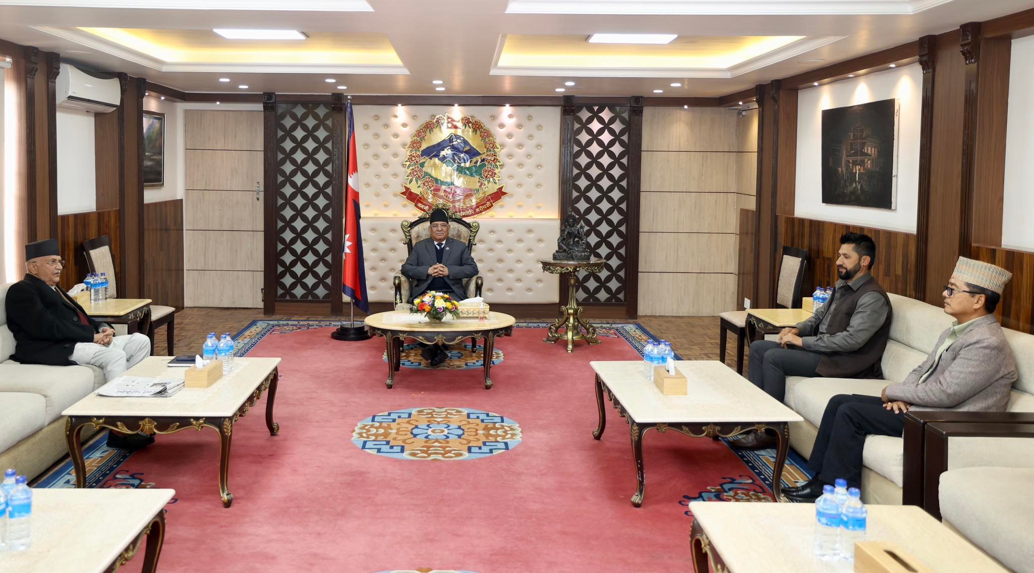 २७ माघ, काठमाडौँ । नेकपा एमालेका अध्यक्ष केपी शर्मा ओली नेतृत्वको उच्चस्तरीय राजनीतिक संयन्त्रको बैठक प्रधानमन्त्री निवास बालुवाटारमा सुरू भएको छ। बैठकमा एमाले अध्यक्ष ओलीसहित प्रधानमन्त्री समेत रहेका माओवादी केन्द्रका अध्यक्ष पुष्पकमल दहाल प्रचण्ड, राष्ट्रिय स्वतन्त्र पार्टीका अध्यक्ष रवि लामिछाने र राष्ट्रिय प्रजातन्त्र पार्टीका अध्यक्ष राजेन्द्र लिङदेन सहभागी रहेका छन ।