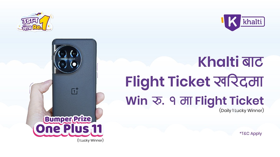 खल्तीबाट हरेक दिन रू १ मा फ्लाइट टिकेट र बम्पर पुरस्कारमा वनप्लस ११ जित्ने मौका