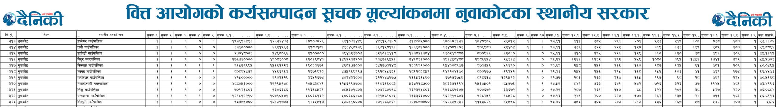 कार्यसम्पादन सूचकमा नुवाकोटका स्थानीय सरकारः म्यागङ पहिलो तारकेश्वर अन्तिम