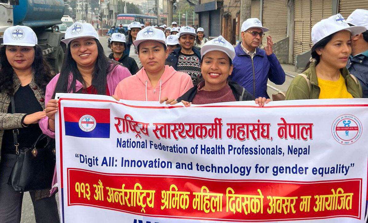 नेकपा (एमाले)का सचिव तथा प्रतिनिधिसभा सदस्य योगेश भट्टराईको प्रमुख आतिथ्यतामा भएको वाकाथुनमा करिव २०० स्वास्थ्यकर्मीहरुको सहभागिता रहेको थियो । करिव ३ किमी दुरी स्वस्थ्यकर्मीहरुसंगै हिडेका एमाले सचिव भट्टराईले माईतिघरमा कोण सभालाई सम्बोधन गदैं अन्तर्राष्ट्रियस्तरमा ८ मार्च १९११ मा महिला कामदारमाथि भएको श्रम शोषणका बिरुद्ध आवाज उठाएको बताए । सचिव भट्टराईले त्यसै दिनको सम्झनामा आज ८ मार्च मनाई रहेको प्रष्ट पार्दै उहाँले नेपालमा सहाना प्रधानले श्रमिक महिलाहरुको पक्षमा आवाज उठाउन सुरू गरेको बताए ।