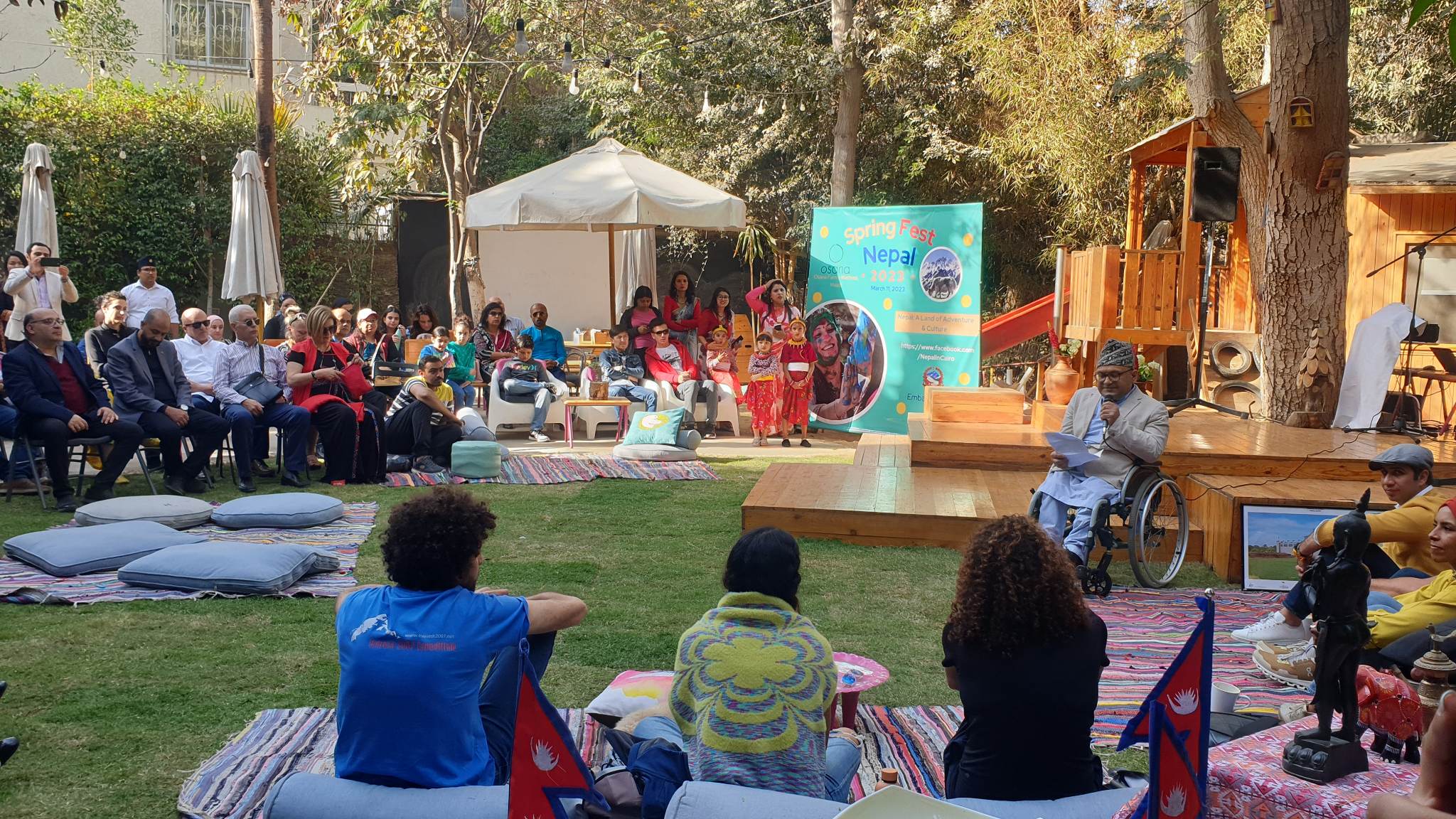 २८ फागुन, काठमाडाैं । इजिप्टस्थित नेपाली राजदूतावासको आयोजनामा राजधानी कायरोमा शनिबार ‘नेपाली वसन्त उत्सव, २०२३’ मनाइएको छ । नेपाली बालबालिकाको स्वागत नृत्य प्रस्तुतिबाट सुरु भएको उक्त कार्यक्रममा इजिप्टका प्रथम सगरमाथा आरोही ओमार साम्राले नेपाली कला, संस्कृति र परम्पराको विविधता तथा सम्पन्नताको वर्णन गर्दै आफूले सगरमाथा आरोहण गर्दाको अनुभवबारे प्रवचन दिएका थिए ।
