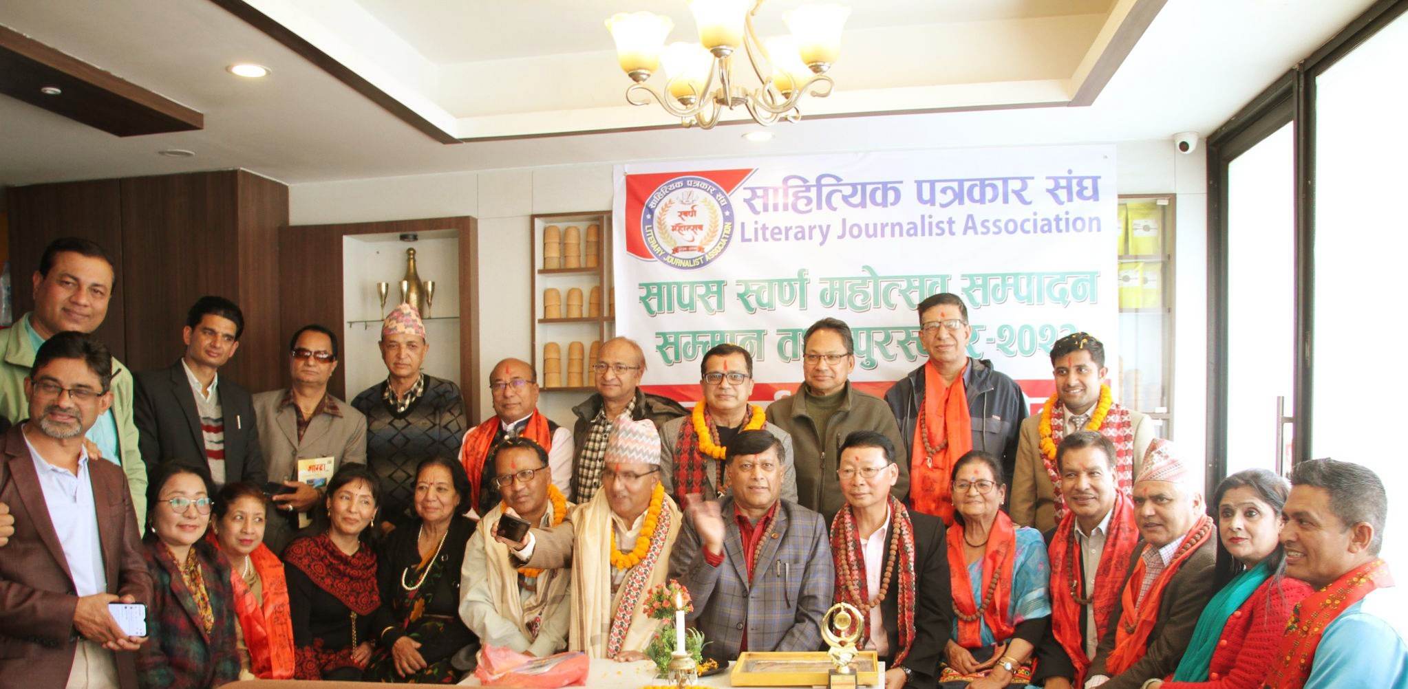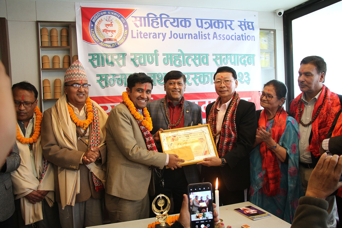 १ चैत, काठमाडाैँ । साहित्यिक पत्रकार संघले चार जना सम्पादक (कपी एडिटर)लाई सम्मानित तथा पुरस्कृत गरेको छ । संघको स्थापना भएको ५० वर्षको अवसरमा गत २०७९ साउन २९ बाट विभिन्न कार्यक्रम आयोजना सहित स्वर्ण महोत्सव मनाईँदै आएको छ । स्वर्ण महोत्सवको अवसरमा संघले बुधबार काठमाडौंमा एक समारोहबीच दुई जना पुस्तक सम्पादकलाई सम्मानित र दुई जना पुस्तक सम्पादकलाई पुरस्कृत गरेको छ ।