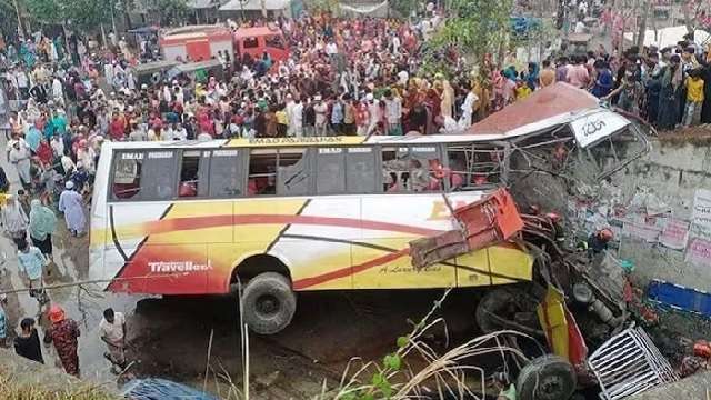 The injured were sent to hospitals in the region,” local police chief Masud Alam told AFP after the crash in the southern district of Shibchar.Road accidents are frequent in Bangladesh due to old and badly maintained vehicles and roads, as well as poorly trained drivers. A highway accident monitor said a record 9,951 people were killed in road accidents in Bangladesh last year.