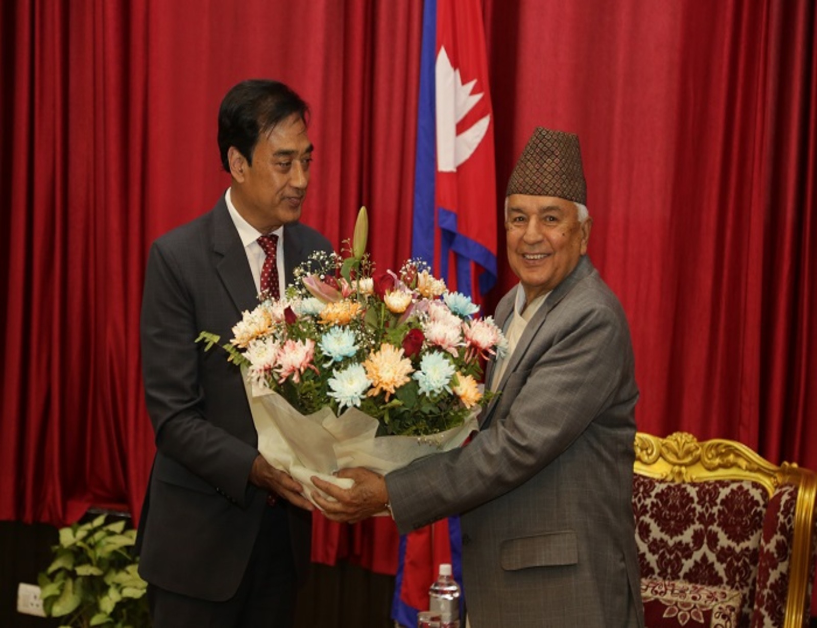 चेम्बर अध्यक्ष राजेन्द्र मल्लसहितको प्रतिनिधिमण्डलले शीतलनिवासस्थित राष्ट्रपति कार्यालयमा पुगी राष्ट्रपति पौडेललाई आज बधाई एवं शुभकामना दिएको हो ।