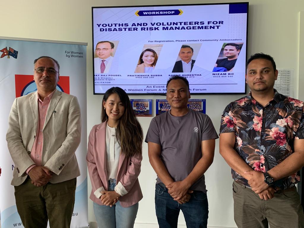 नेपाली भाषी समुदायका लागी विपद जोखिम न्यूनीकरणका लागी मल्टिकल्चर काउन्सिल साउथ अष्ट्रेलियाबाट एक दिने तालिम लिएका नेपाली समुदायका प्रतिनिधिहरु प्रतिक्षा सुब्बा, सागर श्रेष्ठ र निजम केसीले आफूहरूले तालिममा सिकेका कुरा सहभागी विच प्रस्तुत गरेका थिए । कार्यक्रम एनआरएनए युथ फोरम अष्ट्रेलियाका सदस्य श्याम कृष्ण बोहराले धन्यवाद मन्तब्य सहित कार्यक्रम समापन गरेका थिए ।