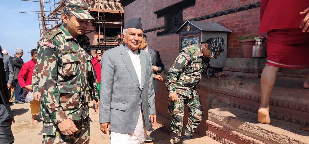 Gorkha, March 26: President Ramchandra Paudel today visited the Gorkha-based Gorakhkali and the Gorakhnath temples and paid homage to the Hindu deities. The President arrived here on a Nepal Army helicopter at around 9:30 am and offered the special worship at the temples that lie on the premises of historic Gorkha Palace. Palace’s main priest Sharada Prasad Bhattarai assisted the President to perform puja as per the rituals.