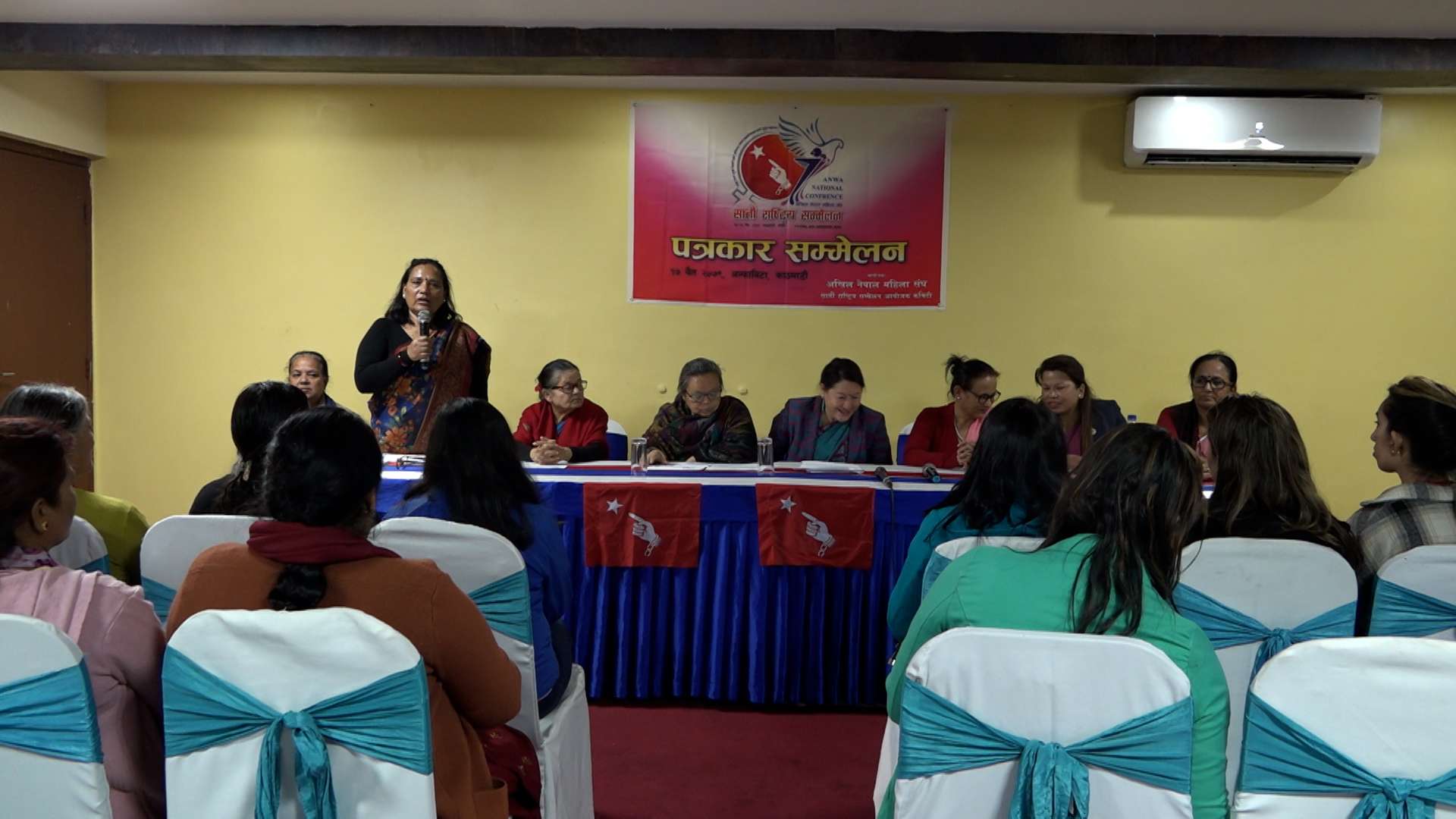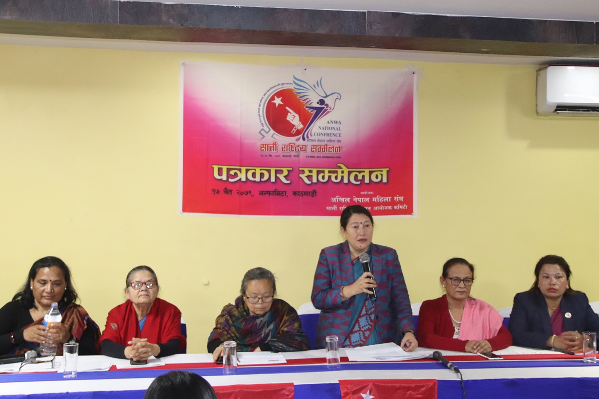 १७ चैत, काठमाडाैं । अखिल नेपाल महिला सङ्घको सातौँ राष्ट्रिय सम्मेलन आगामी चैत २५ र २६ गते काठमाडौंमा हुने भएको छ । शुक्रबार काठमाडौंमा आयोजित पत्रकार सम्मेलनमा एमाले निकट महिला सङ्गठन अनेमसंकी सचिव सूचिता शाक्यले राष्ट्रिय आगामी तीन वर्षका लागि नेतृत्व चयन गर्दै नीति तथा कार्यक्रम पारित गर्ने कार्यक्रम गरी सम्मेलन आयोजना गर्न लागिएको जानकारी दिइन् ।