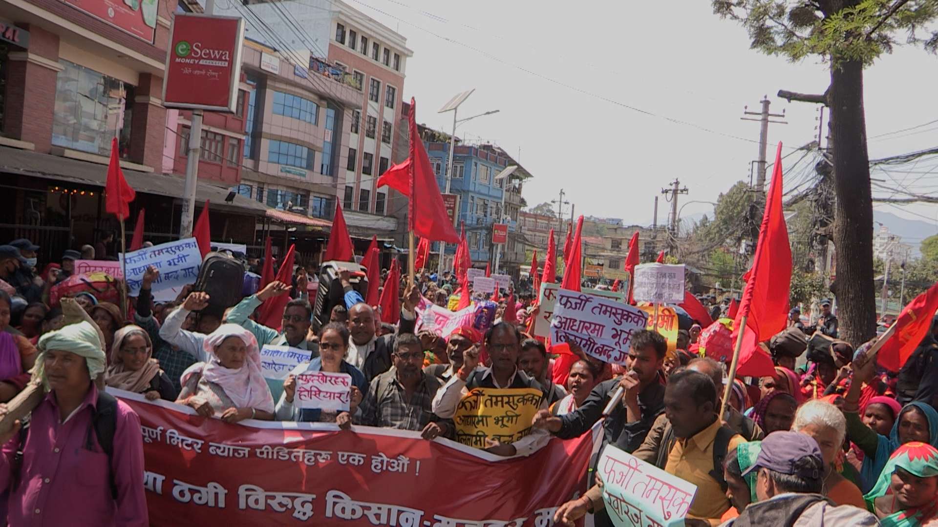फर्जी तमसुक खारेज गर, किसानको भूमि फिर्ता गर, सुदखोरहरुको सम्पत्ति खारेज गर, पीडितलाई न्याय दे लगायतका नारा लेखिएका प्लेकार्ड बोकेर उनीहरूले त्रिपुरेश्वर, माइतीघर हुँदै भद्रकालीसम्म मिटरब्याजीका विरुद्ध चर्को नाराबाजी गरेका छन् ।