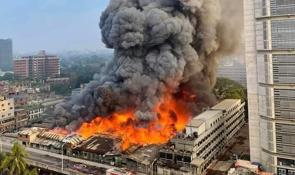 २१ चैत, काठमाडाैं । बंगलादेशको राजधानी ढाकाको बंगब बजारमा भयावह आगलागी भएको छ । बिहान छ बजेदेखि लागेको आगो अहिलेसम्म पनि नियन्त्रण लिन सकिरहेको छैन । आगोले धेरै धन, जन को क्षति भएको छ ।