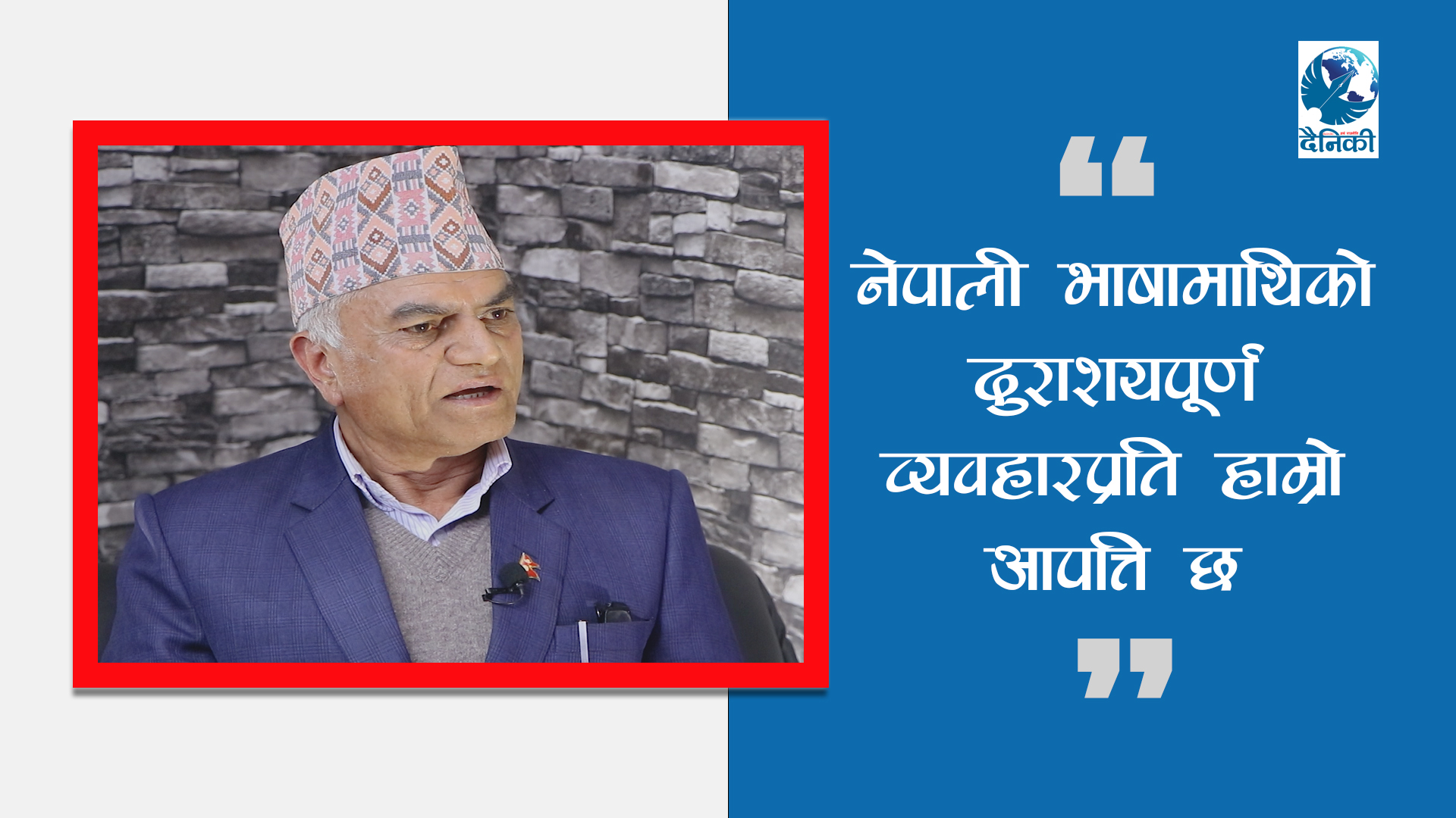 नेपालीहरूको जुन खालको भाषा, संस्कृति र सभ्यता छ त्यसमा हामीले गर्व गर्ने विषय छ । यसमा राष्ट्रियता पनि जोडिएको छ त्यसलाई सिध्याउन खोजिएको त होइन ?