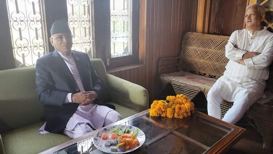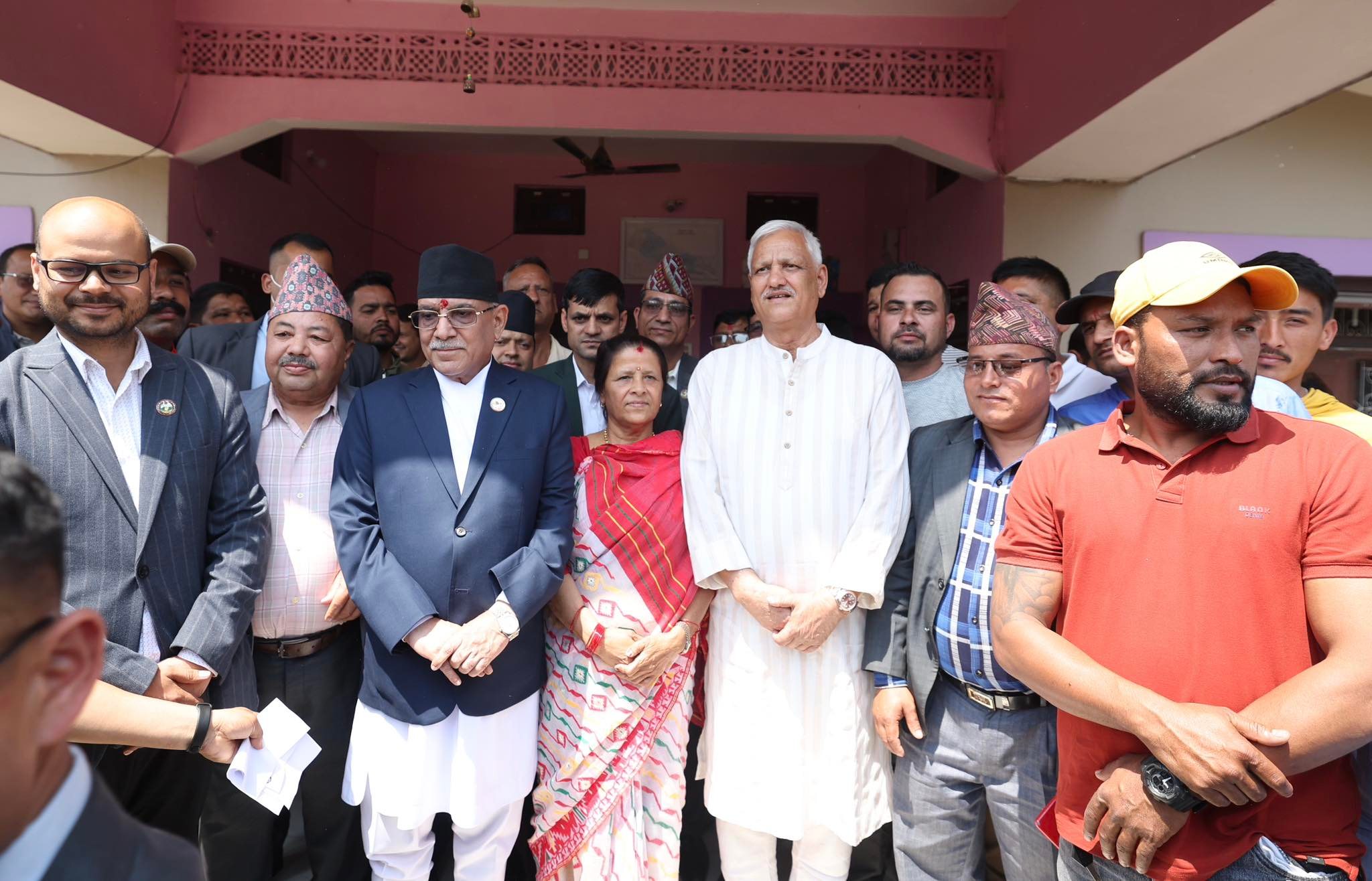 एमाले सचिव लेखराज भट्टको घरमा पुगे प्रधानमन्त्री प्रचण्ड