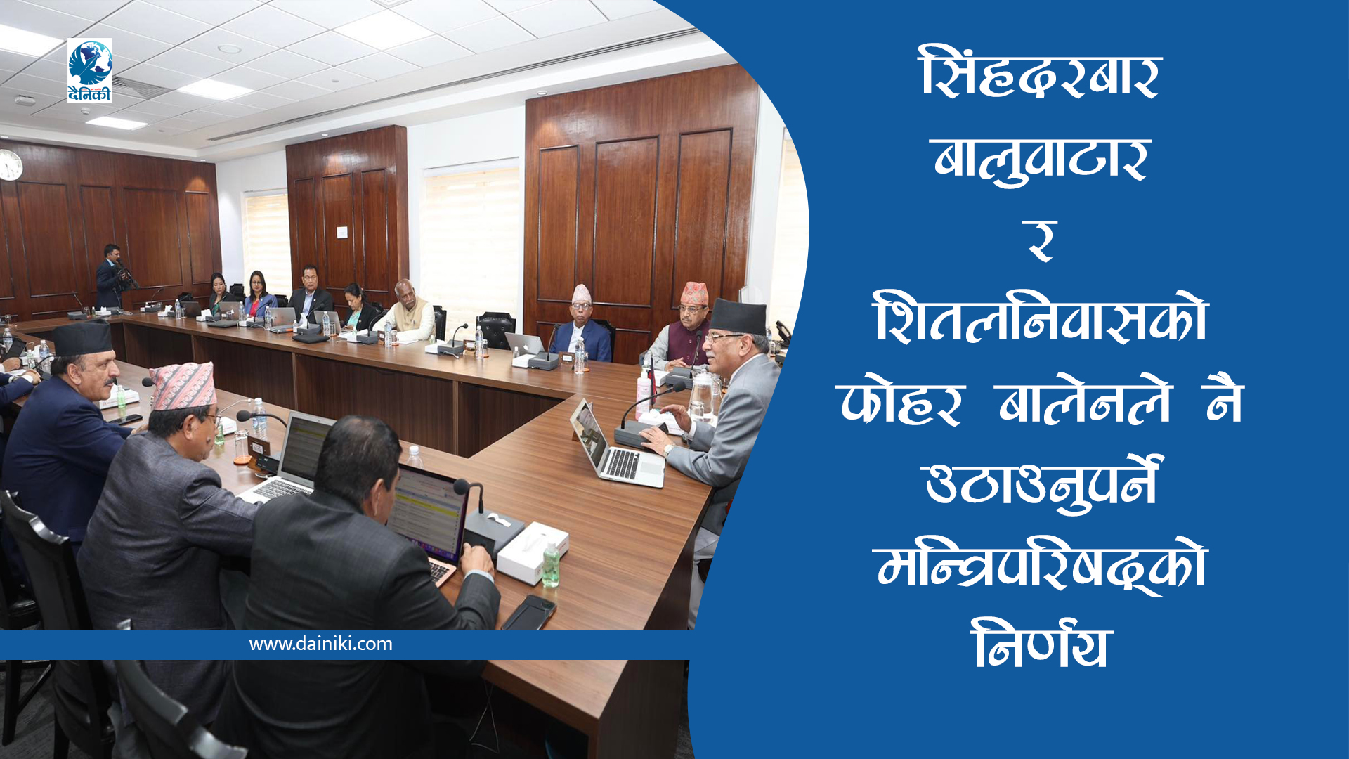 काठमाडौँ महानगरपालिकाका प्रमुख बालेन्द्र (बालेन) साहले उक्त स्थानको फोहर नउठाउने सार्वजनिक अभिव्यक्ति दिनुभएको थियो । बैठकले आयातित र उत्पादित सम्पूर्ण खाद्य पदार्थमा जीवनाशक विषादीको अवशेषको अधिकतम सीमा निर्धारण गर्न मन्त्रिपरिषद्को पूर्वाधार समितिबाट प्राप्त प्रस्ताव स्वीकृत गर्ने निर्णय गरेको छ ।