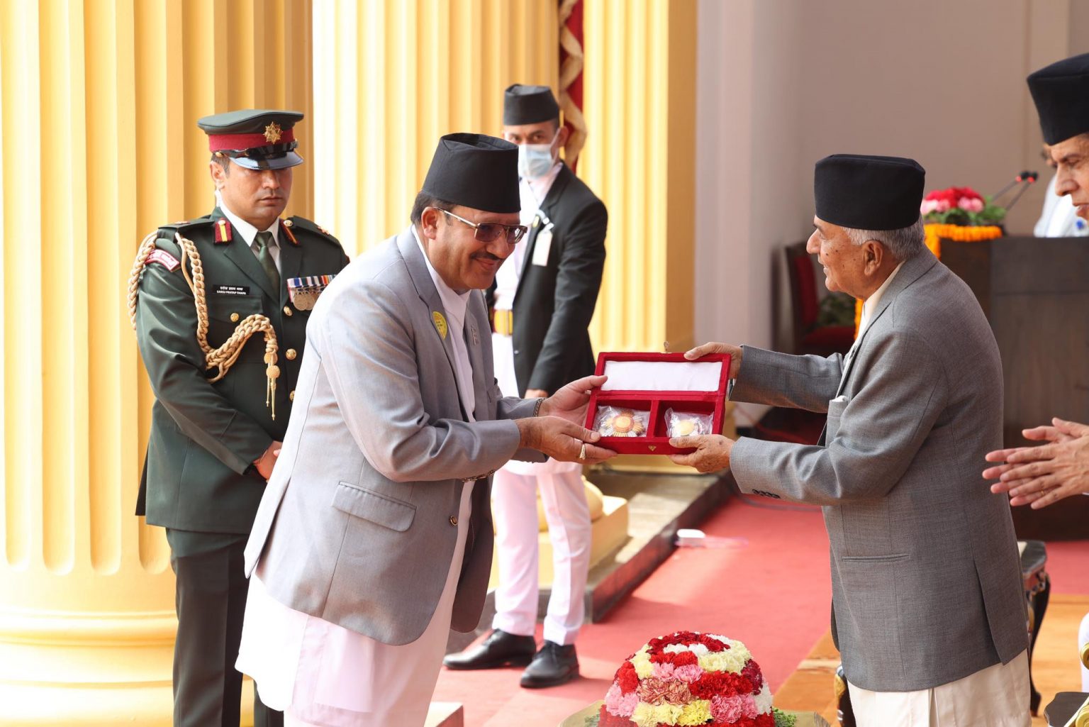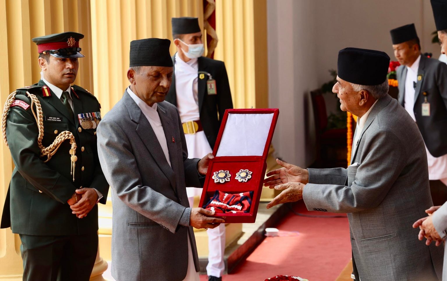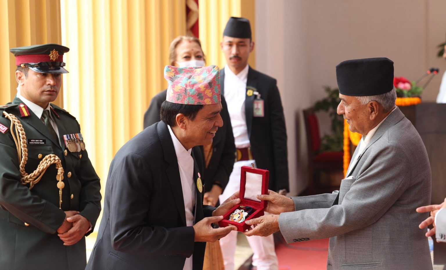 १ वैशाख, काठमाडाैं । राष्ट्रपति रामचन्द्र पौडेलले विभिन्न क्षेत्रमा योगदान पुर्याएका व्यक्तिहरूलाई विभूषण प्रदान गरेका छन्। असोज ३ गते संविधान दिवसका दिन घोषित विभूषण आज प्रदान गरेका हुन्।