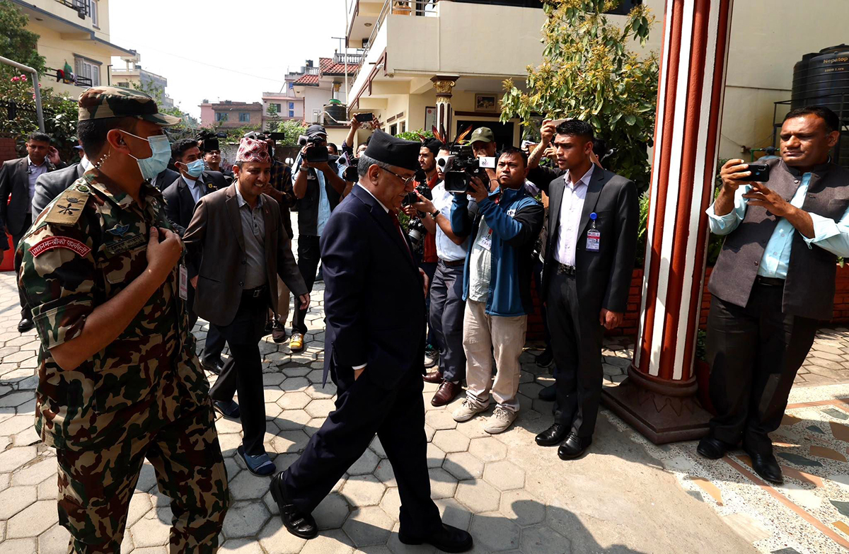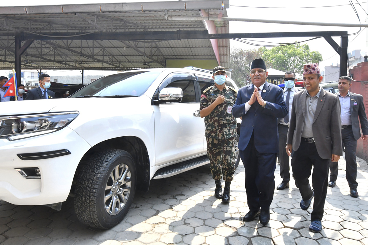 प्रचण्ड र देउवा एउटै गाडी चढेर ओली निवास बालकोटमा