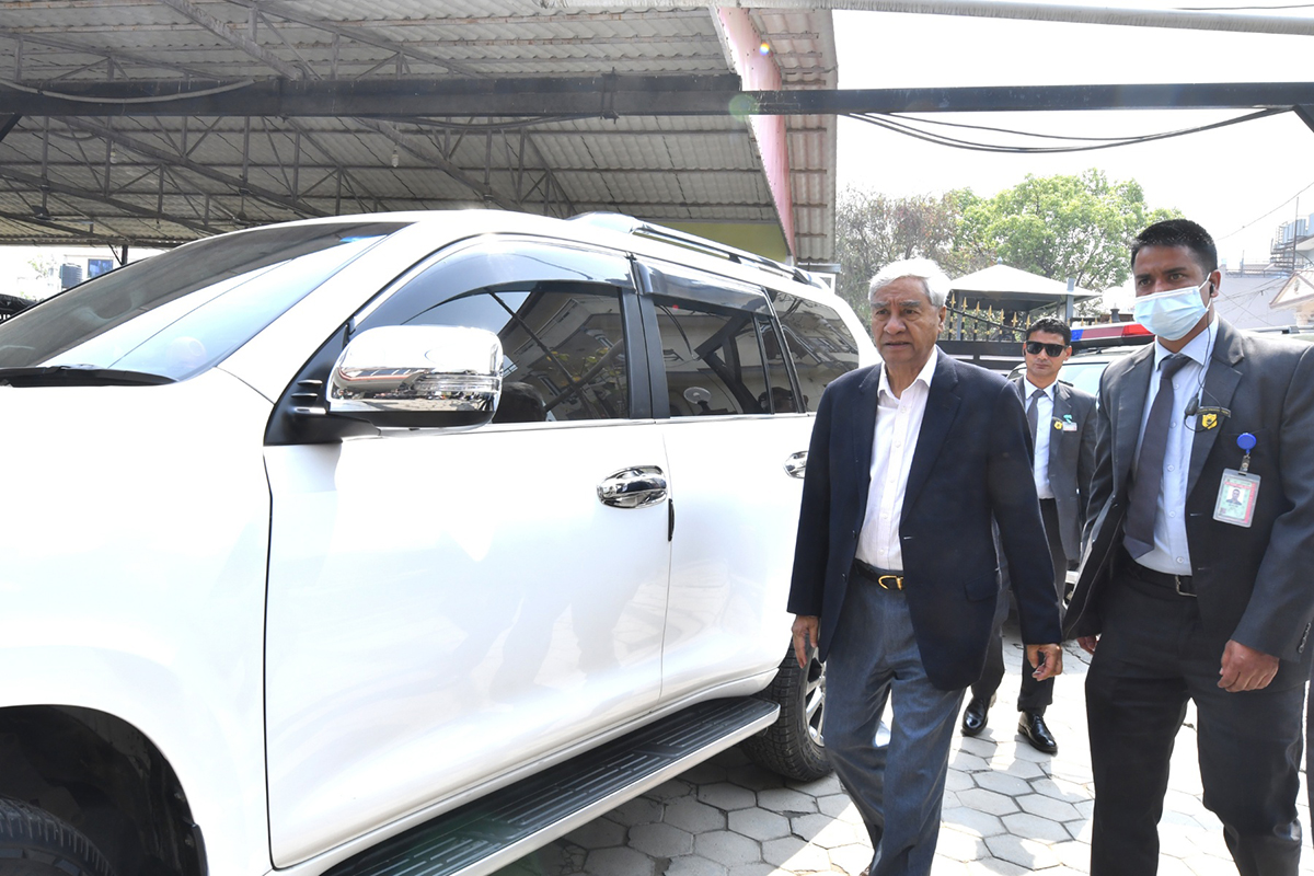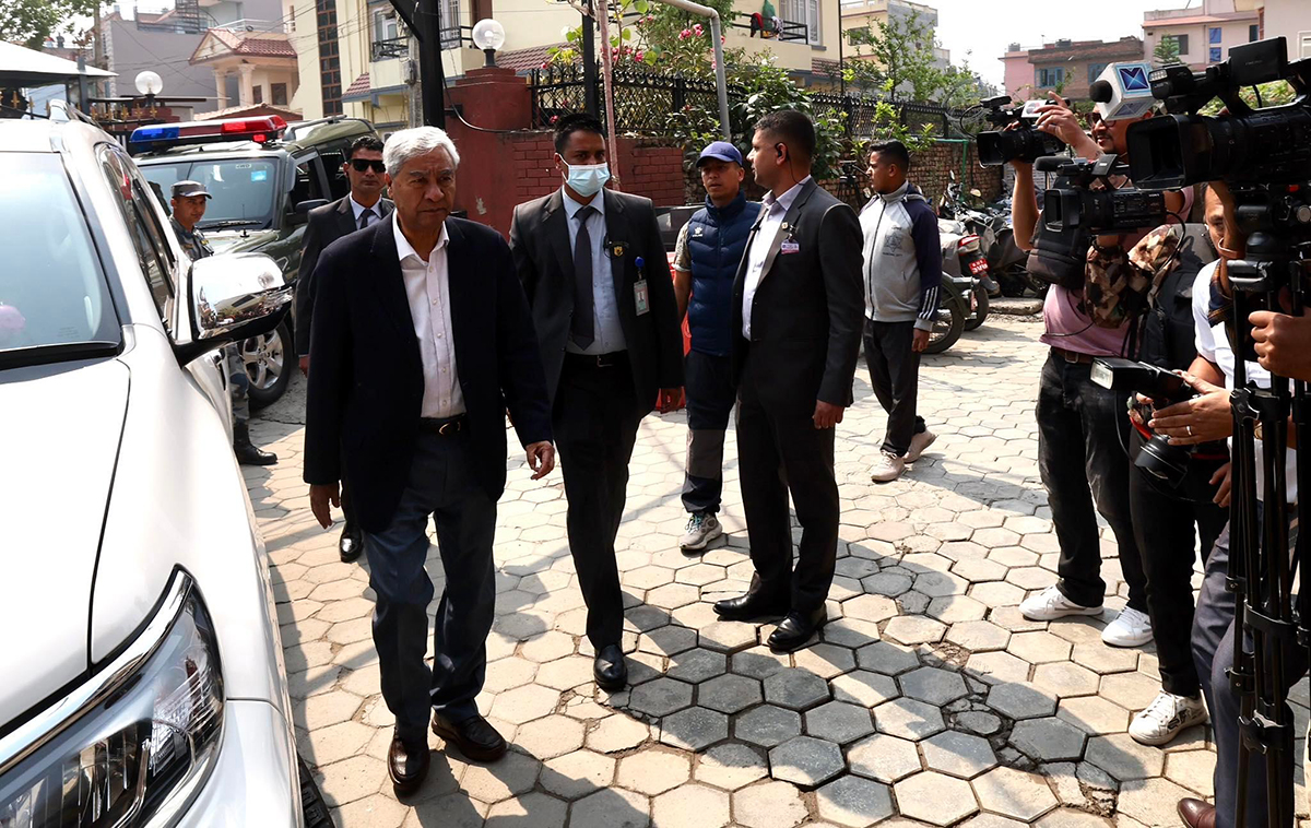 ४ वैशाख, काठमाडाैँ । प्रधानमन्त्री पुष्पकमल दाहाल प्रचण्ड र नेपाली कांग्रेसका सभापति शेरबहादुर देउवा एउटै गाडी चढेर नेकपा(एमाले)का अध्यक्ष केपी शर्मा ओलीको निवास बालकोटमा पुगेका छन । संसदको बिजनेशमा सहमति जुटाउने अभिप्रायले नेताहरू बालकोट पुगेका हुन । यसअघि दुई चरणमा भएको बैठकको सहमतिलाई मुर्त रूपदिन नेताहरू बालकोट पुगेका हुन । ओली अस्वस्थ भएकाले घरबाट निस्कन नसक्ने भएपछि नेताहरू बालकोट पुगेका हुन । बैठकमा सभामुख देवराज घिमिरे पनि सहभागी रहेका छन । तस्बिरहरूः सम्बन्धित नेताहरूको सचिवलाय