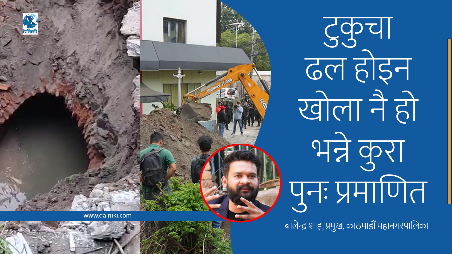 २४ वैशाख, काठमाडाैँ । टुकुचा (इच्छुमति नदी)को उत्खनन पुनः सुरू हुने भएको छ । उच्च अदालत पाटनले काठमाडाैँ महानगरपालिकाका प्रमुख बालेन्द्र शाह (बालेन)को निर्णयको पक्षमा फैसला गरेसँगै टुकुचाको उत्खनन पुनः सुरू गर्न लागिएको हो ।