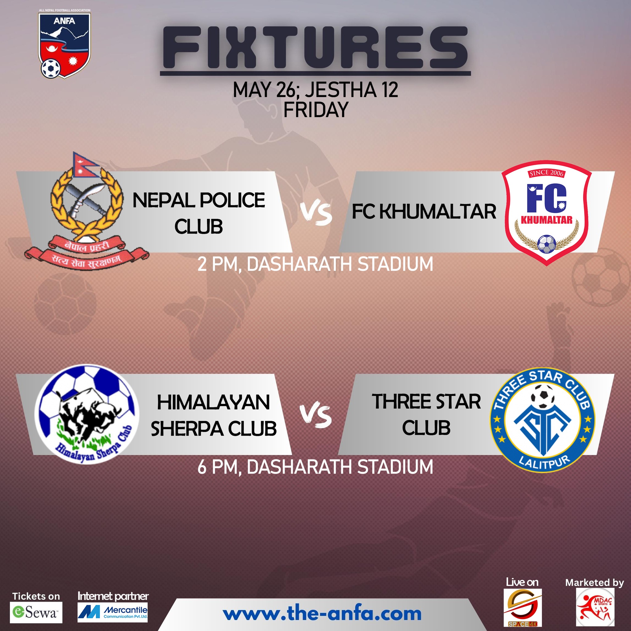 ‘ए’ डिभिजन लिगमा आज नेपाल पुलिस र एफसी खुमलटार तथा हिमालयन शेर्पा र थ्रीस्टारबीच प्रतिश्पर्धा हुँदै