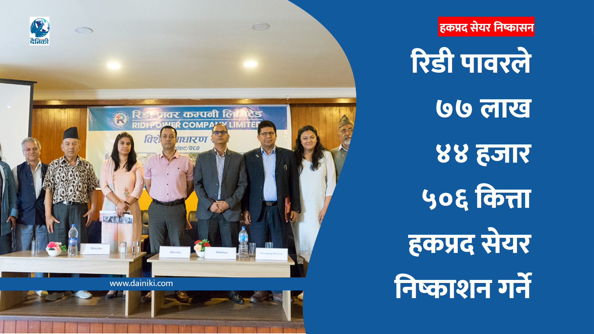 रिडी पावरले ५० प्रतिशत हकप्रद सेयर जारी गर्ने