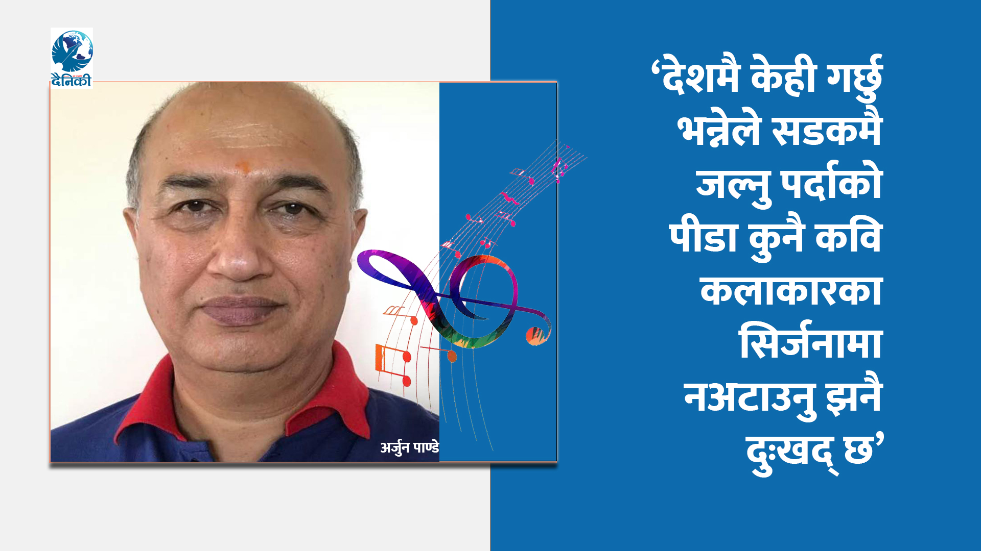 यतिसम्म त भयो तर आज पनि प्रगतिशिल, जनपक्षिय भनिने साहित्य, कला, गीत, रचनाहरु पुरानै धारमा बगिरहने हो भने त्यस्ता सिर्जनाहरुले समृद्धिको युग डोर्याउन सक्दैन । देश निर्माण गर्ने कर्मठ युवा तैयार पार्ने काम सरकारको मात्र होइन, संसारभर । जनतालाई जिम्मेवार बनाउने, सकारात्मक सोच बढाउने, आफ्नो भाग्य आफैले कोर्ने सक्षम बनाउने काम सबै प्रबुद्ध बर्गको हो । कबि कलाकार, संस्कृतिकर्मीका सिर्जनाले अब त्यो पाटोलाइ अनदेखा गर्नु हुँदैन । अब सबैको सोच देशलाइ समृद्ध बनाउने ,धनी बनाउने हुनुपर्दछ ।