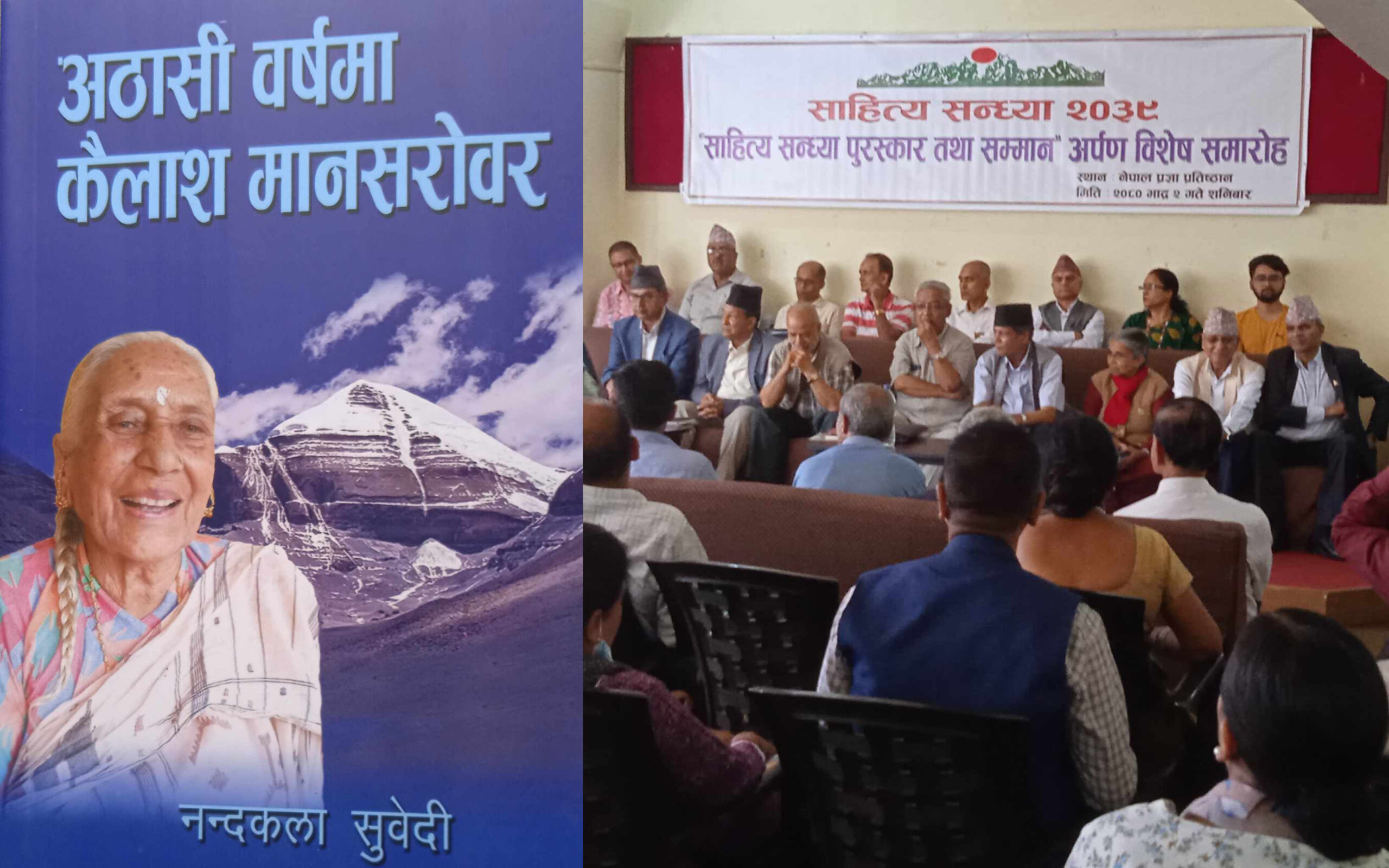 ४ भदाै, काठमाडाैँ । चालीस बर्षको उमेरमा अक्षर चिनेर प्रौढ शिक्षिका एवम् सामाजिक अभियन्ता बनेकी सुर्खेतकी ९३ वर्षीया नियात्राकार नन्दकला सुवेदी काठमाडौँमा पुरस्कृत एवम् सम्मानित भएकी छन् । उनलाई शनिवार नेपाल प्रज्ञा प्रतिष्ठानमा साहित्य सन्ध्या-हरिप्रिया हरिप्रसाद चापागाईं नियात्रा पुरस्कार एवम् सम्मान २०७९ प्रदान गरिएको हो ।