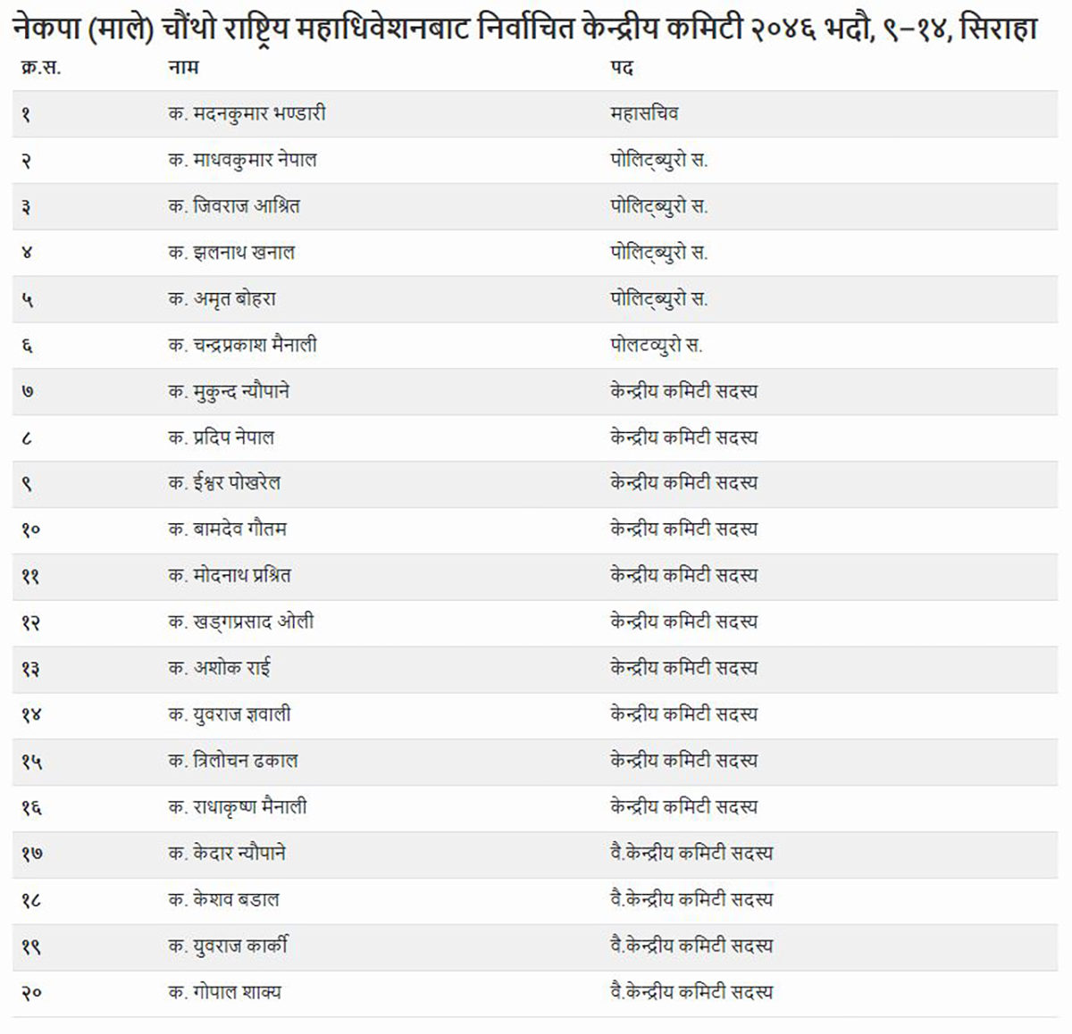 त्यस महाधिवेशनले ०३९ सालमा सीपी मैनालीलाई विदा गरी महासचिव बनेका झलनाथ खनाललाई बिदा गरी मदनकुमार भण्डारीलाई नयाँ महासचिवका रुपमा चयन गर्यो । पार्टी नेतृत्वमा मदन भण्डारी आएपछि माघमा संयुक्त वाममोर्चा गठन भयो र, नेपाली कांग्रेससँग सहकार्य गरी २०४६ फागुन ७ गतेदेखि संयुक्त जनआन्दोलनको थालनी नै गरियो । जनआन्दोलनबाट बहुदलीय व्यवस्थाको स्थापना भयो । परिवर्तित परिस्थितिमा २०४७ पुस २२ गते नेकपा (माले) र नेकपा (माक्र्सवादी) बीच एकता भई नेकपा (एमाले) को गठन भएपछि त्यो नै नेकपाको मूलप्रवाहका रुपमा स्थापित भयो र अहिलेसम्म निरन्तर रहेको छ ।
