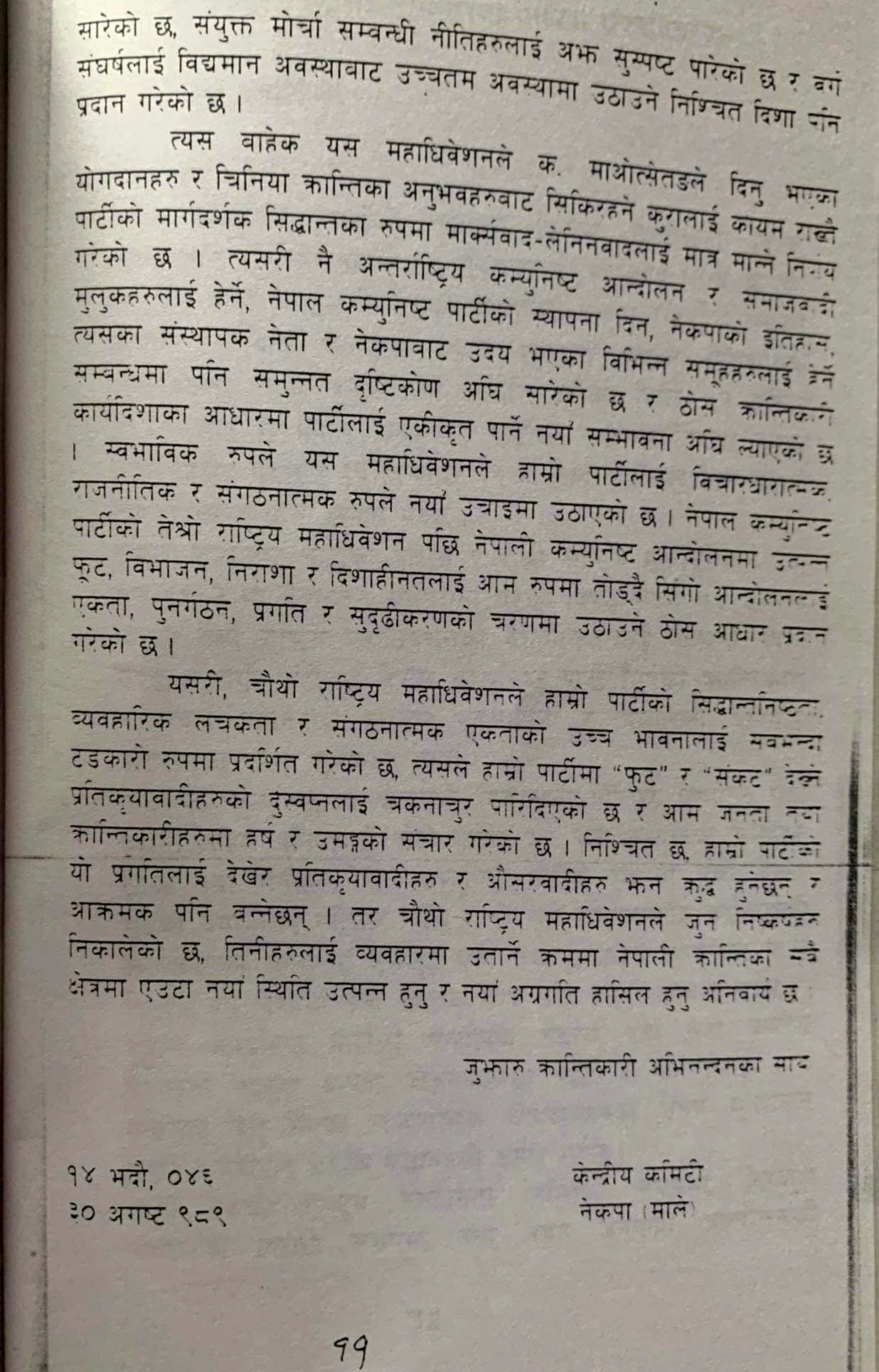 (महाधिवेशनको विज्ञप्ति नेकपा (एमाले)का उपाध्यक्ष सुरेन्द्र पाण्डेको फेसबुक पेजबाट साभार गरिएको हो -प्रधानसम्पादक)