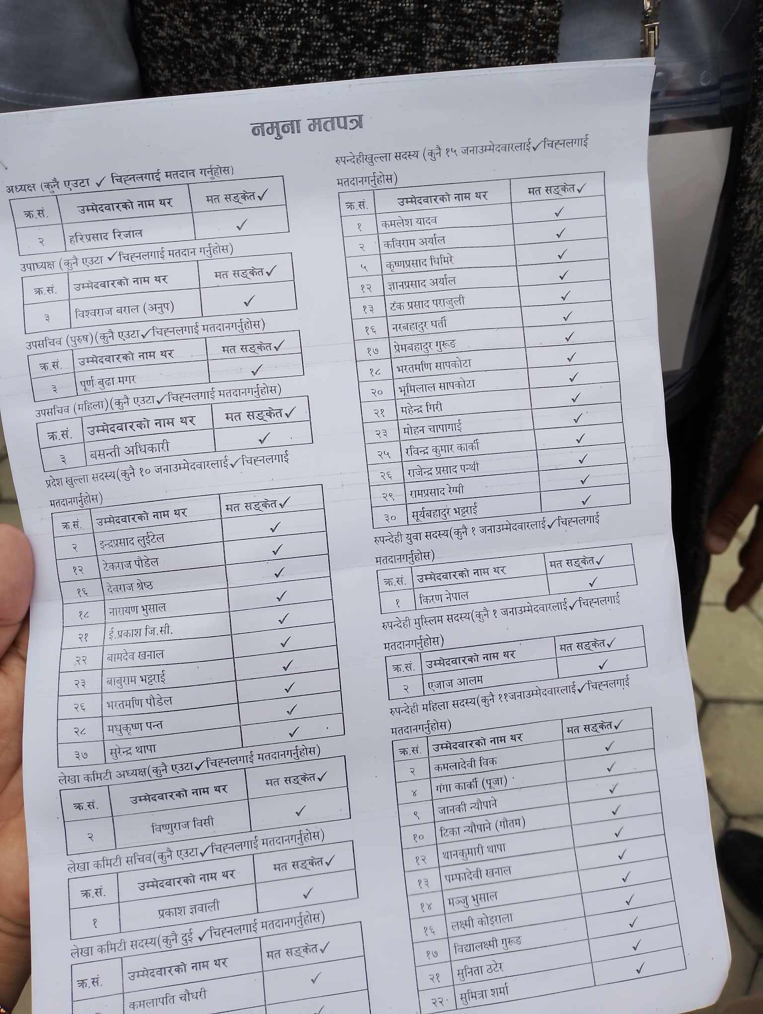 कुल खसेको ९६५ मत मध्ये कँडेलले ४७९ मत प्रात गरेभने उनका प्रतिस्पर्धी रिजालले ४७७ मत प्राप्त गरे । उपाध्यक्ष पदमा कँडेल समुहकै भोजप्रसाद श्रेष्ठले ४५५ मत प्राप्त गरी विजयी भए । उनका प्रतिस्पर्धी रिजाल समूहका बिश्वराज बराल अनुपले ३०६ मत प्राप्त गरे ।