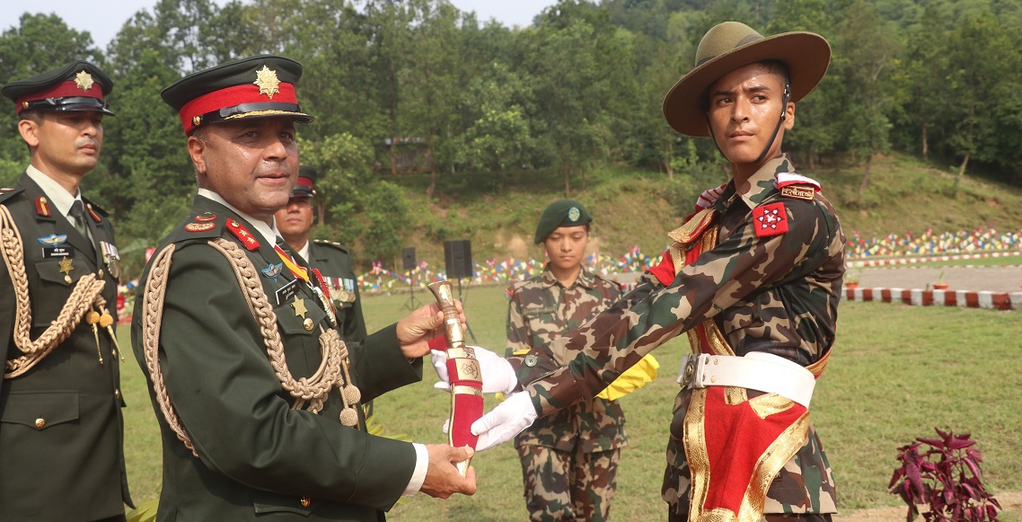 यसअघि यही भदौ २४ गते प्रधान सेनापति महारथी प्रभुराम शर्माले आफ्नो जिम्मेवारी सम्हालेको दोस्रो वर्ष पूरा भएको अवसरमा नेपाली सेनाका सकल दर्जालाई सम्बोधन गर्ने क्रममा तालिम सम्पन्न गर्ने सैन्यलाई आधारभूत तालिम सफलतापूर्वक सम्पन्न गरी सिपाही हुन लागेकोमा बधाई दिए थियो साथै उहाँले सैनिक जीवनमा सफलताको लागि शुभकामना व्यक्त गरे ।