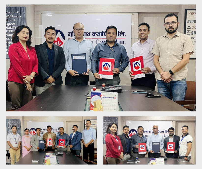 २ असाेज, काठमाडाैं । मुक्तिनाथ विकास बैंकले सेवाग्राहीलाई सुविधा दिन र सेयर लगानी गर्न चाहने ग्राहकलाई सम्पूर्ण सेवाहरु एकै स्थानबाट उपलब्ध गराउन मुक्तिनाथ क्यापिटल लिमिटेड र सेयर ब्रोकर कम्पनीहरुबीच त्रिपक्षीय व्यावसायिक सम्झौता गरेको छ। यो सम्झौताबमोजिमको सुविधाहरु ‘मुक्तिनाथ सेयरधनी बचत खाता’ खोल्ने ग्राहकले पाउनेछन्।
