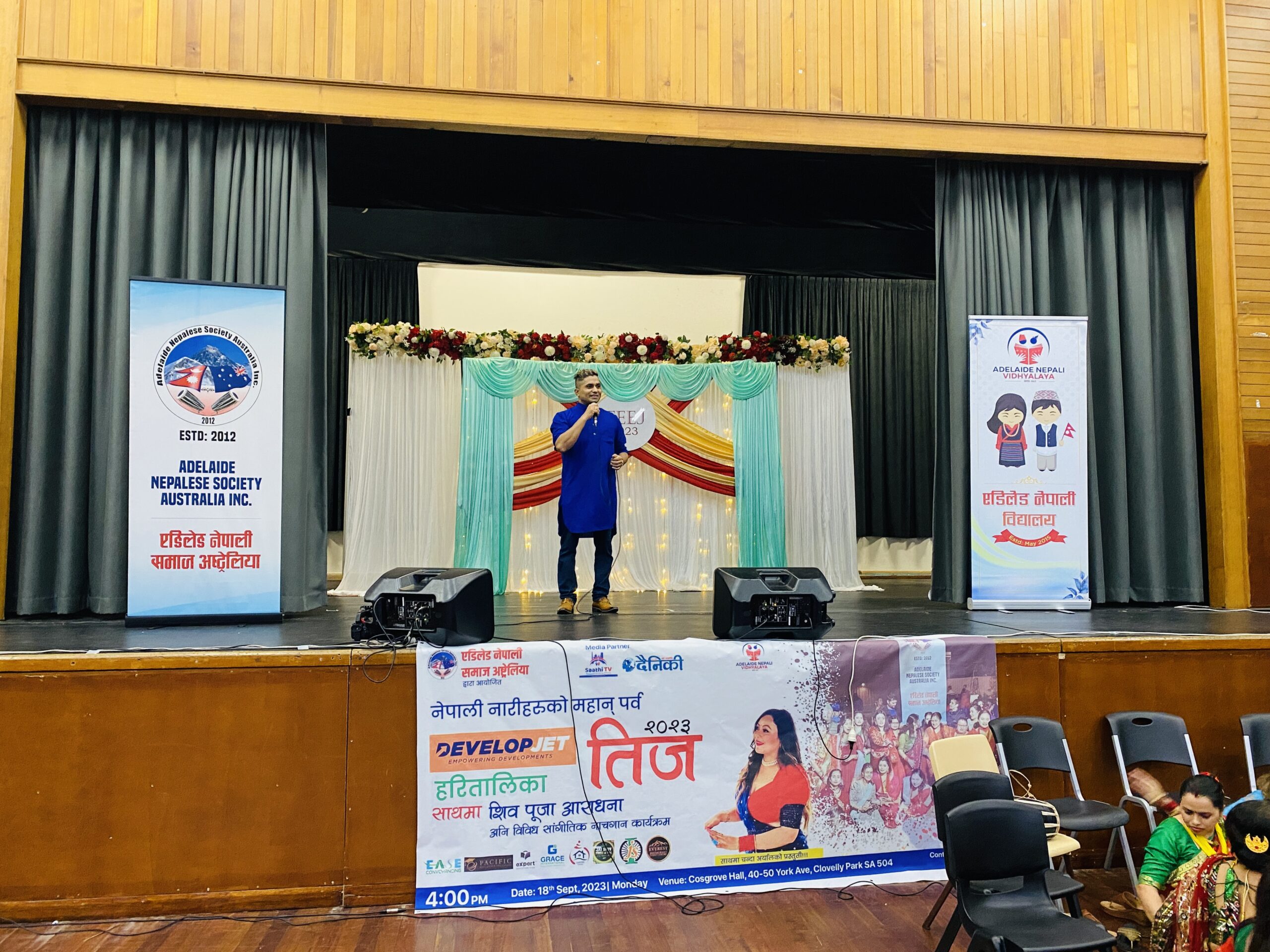 नेपालबाट आएकी कलाकार चन्दा अर्याल लगायत साउथ अष्ट्रेलियामा बसोबास गर्दै आएका कलाकारहरुले विविध गित संगित प्रस्तुत गरेका थिए । परम्परागत भाकाका तिज गितमा नेपालबाट आएका अभिभावकहरुको सहभागिताले निकै रौनकता थपिएको थियो ।
