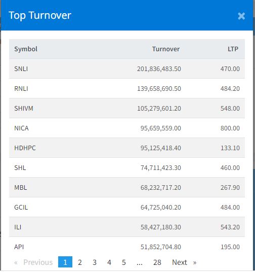 आज २७८ कम्पनीको १ करोड १२ लाख ६४ हजार ३०९ कित्ता सेयर किनबेच हुदाँ ३ अर्ब २९ करोड ३९ लाख २१ हजार रुपैयाँको कारोबार भएको छ । आज सेयर बजार बढ्दा सन नेपाल लाइफ इन्स्योरेन्सको सर्वाधिक कारोबार भएको छ । आज कम्पनीको २० करोड १८ लाख ३६ हजार रुपैया बराबरको कारोबार भएको छ ।