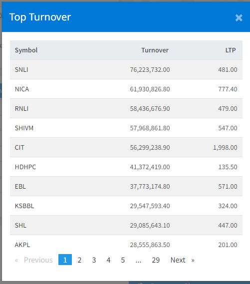 आज सेयर बजार घट्दा सन नेपाल लाइफ इन्स्योरेन्सको सर्वाधिक कारोबार भएको छ । कम्पनीको यस दिन ७ करोड ६१ लाख ९४ हजार रुपैया बराबरको कारोबार भएको छ । त्यस्तै, एनआइसी एशिया बैंकको ६ करोड १९ लाख ३० हजार रुपैयाँ, रिलायबल लाइफ इन्स्योरेन्सको ५ करोड ८४ लाख २२ हजार रुपैयाँ, शिवम् सिमेन्टको ५ करोड ७९ लाख ६८ हजार रुपैयाँ र नागरिक लगानी कोषको ५ करोड ६२ लाख ९९ हजार रुपैयाँको कारोबार भएको हो ।
