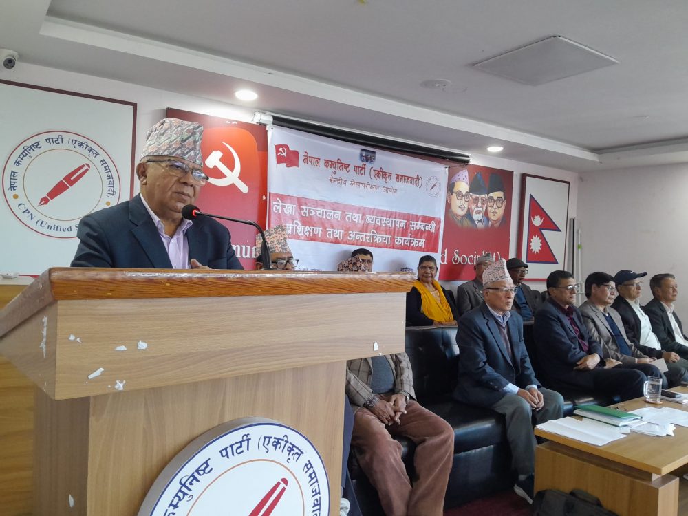 पार्टीको केन्द्रीय लेखा परीक्षण आयोगद्वारा पार्टी केन्द्रीय कार्यालयमा आयोजित लेखा सञ्चालन तथा व्यवस्थापनसम्बन्धी प्रशिक्षणको उद्घाटन गर्दै अध्यक्ष नेपालले आफू नेतृत्वको पार्टी सङ्घीय लोकतान्त्रिक गणतन्त्र, नेपालको संविधान २०७२ तथा विभिन्न जनआन्दोलनबाट हासिल सम्पूर्ण उपलब्धिको रक्षाका निम्ति जुनसुकै मूल्य चुकाउन तयार रहेको बताए ।