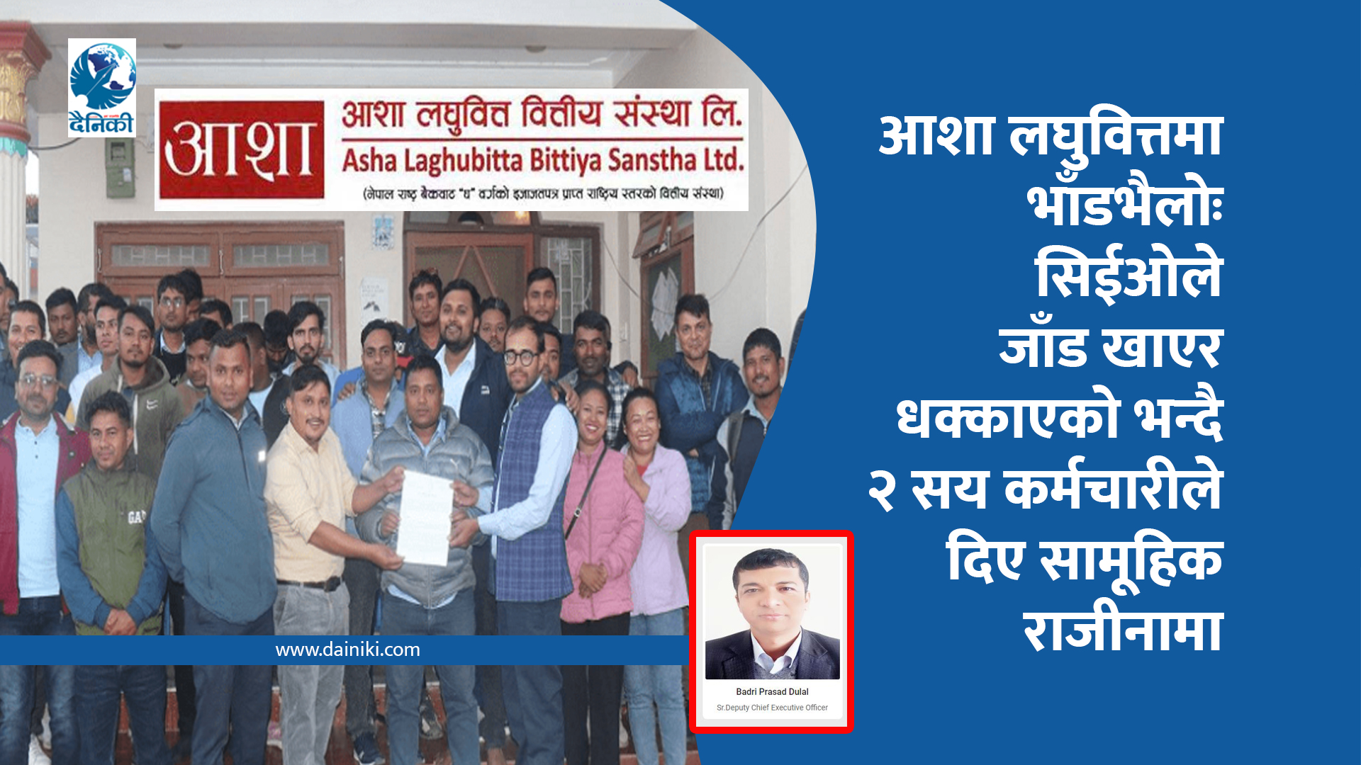 आशा लघुवित्तका २ सय कर्मचारीले दिए सामूहिक राजीनामा, सिईओले जाँड खाएर धम्काएको आरोप